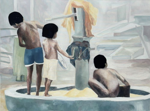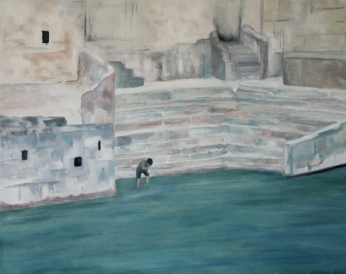 Fragmentos visuales de realidades azules. Pinceladas de texto para que el espectador complete y habite la obra.